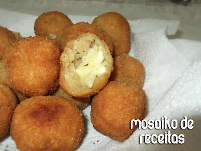 Pessoal, eu estou COMPLETAMENTE sem tempo de tudo. Mil coisas novas no trabalho, apresento meu trabalho de conclusão de semeste esse sábado, quase não estou tendo tempo com tantas preocupações juntas. Peço desculpas pelo sumiço, fico com o coraçãozinho apertado vendo tanta receita linda que as amigas e amigos estão preparando e eu não estou deixando um comentário carinhoso em todas elas :( Mas as férias estão aí e se Deus quiser a semana que vem já respiro bem melhor e posso voltar a me dedicar ao blog. Como não poderia deixar vocês na mão, trago uma receitinha maravilhosa. Essas bolinhas de queijo eu vi no Panelaterapia e a receita me ganhou pela simplicidade. Lá vocês encontram um passo a passo super explicativo. A receita original vocês encontram aqui. As bolinhas ficaram super sequinhas, crocantes e deliciosas. O orégano dá um super toque no recheio, não deixem de usar. Depois das Coxinhas, bolinhas de queijo são meu salgadinho preferido :)