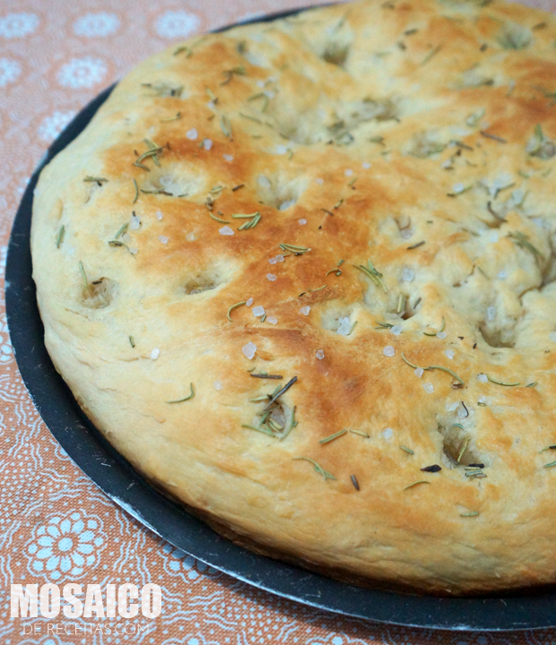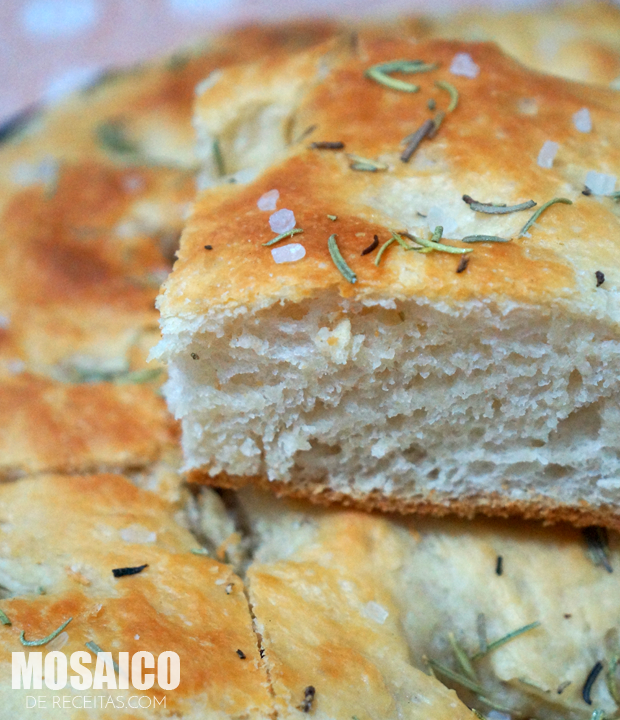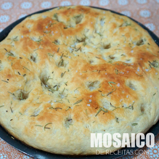 Montagem: Unte uma fôrma com um fio de azeite e abra a massa sobre ela. Deixe crescer por 30 minutos. Afunde a massa em alguns pontos com as pontas dos dedos delicadamente. Regue com o azeite, salpique o sal e o alecrim. Leve ao forno preaquecido 180/200° por 30 a 40 minutos ou até dourar.
