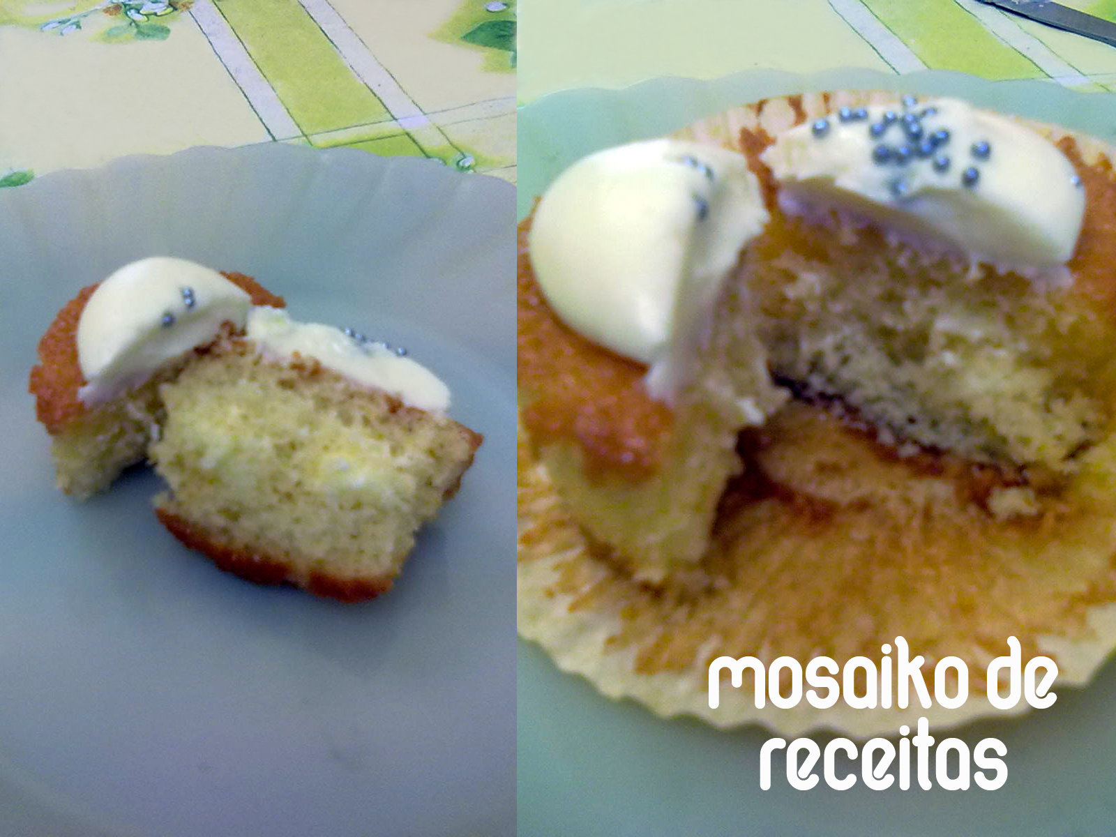 Pulo do gato: Não encha demais as forminhas para não transpordar a massa. A cobertura fica divina, muito gostosa mesmo. Pensei que ia ficar igual buttercream, meio enjoativa, mas não ficou não. Bem doce é logico porém bem saborosa. Eu achei melhor conservá-los na geladeira devido à cobertura, e eles ficaram mais gostosos ainda, não ficam duros nem nada. A cobertura/recheio rendeu o suficiente para todos os 35 bolinhos. Essa é uma receita que rende bem e tenho certeza que você vai ouvir elogios maravilhosos, eu garanto ;)