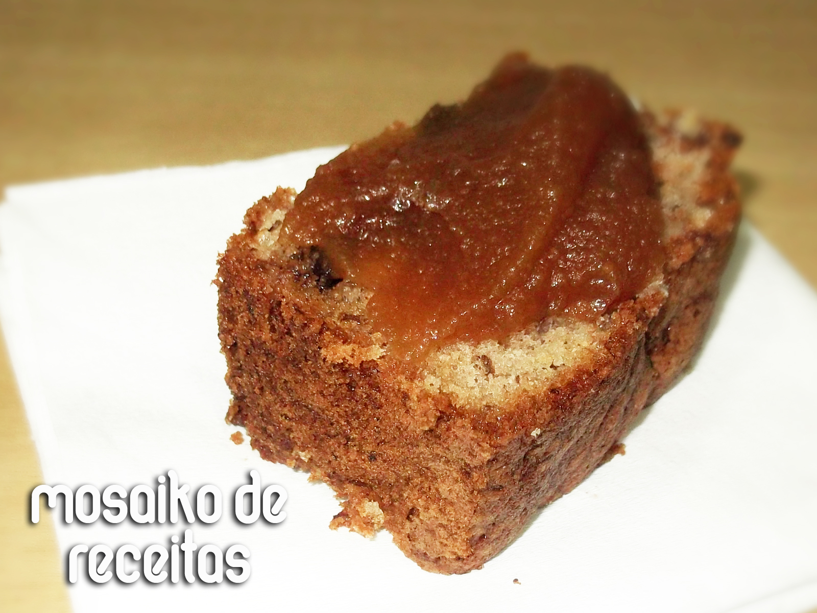 Bolo de banana sempre foi um dos meus preferidos, e combinado com nozes e chocolate fica meio difícil de resistir não é? rsrs. A receita veio do Simples Assim da talentosa Lylia. Esse bolo foi eleito por um grupo de blogueiras como o bolo de banana mais gostoso que elas já comeram. Com uma indicação assim e um histórico que inclui o melhor bolo de maçã do mundo por parte da Lylia, eu tinha de experimentar. O resultado foi um bolo úmido, cheio de pedacinhos de nozes e chocolate, que a cada mordida a gente solta aquele “huuuuuum” de tão gostoso que fica. Aproveitei e fiz uma calda de caramelo que eu estava de olho faz tempo, a qual recomendo IMENSAMENTE , dá um tchan a mais e deixa o bolo arrasador.