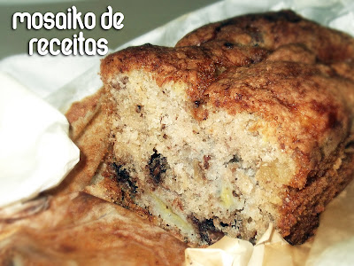 Hum...que delicia de bolo, a mistura de banana, nozes e chocolate fica perfeita.