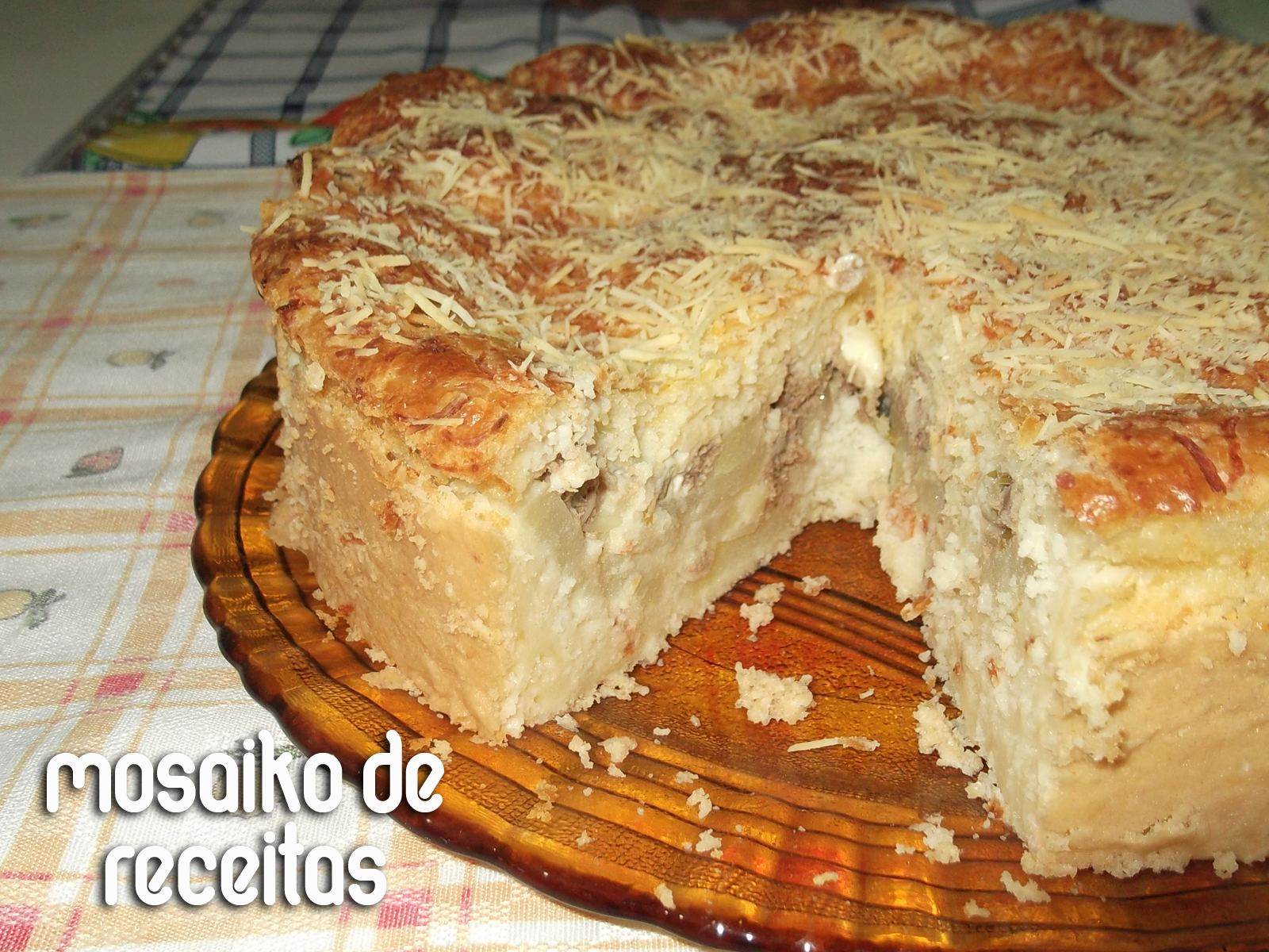 Recheio: Dessalgue o bacalhau como você costuma fazer mesmo e desfie (eu fiz assim: de um dia pro outro trocando a água 4 vezes e aferventando em água limpa no final). Refogue numa panela com azeite, o alho e a cebola por uns 3 minutos. Junte o bacalhau e refogue mais um pouquinho, coloque os temperos a gosto e no final o tomate, cheiro verde e as azeitonas. Deixe por mais uns 3 minutos e desligue.