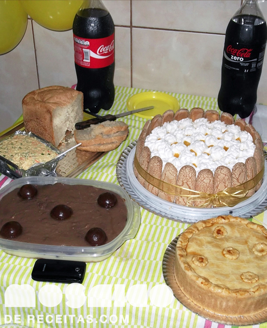 Pessoal, estou super sumido daqui esses dias né? Muita coisa acontecendo ao mesmo tempo. Muitas mudanças, alguns problemas, mas meu coração ainda está por aqui hein. Passo sempre nos bloguitos amigos acompanhando o que essas cozinhas maravilhosas estão trazendo de bom, só não estou comentando porque entro sempre rapidinho. Quero deixar um beijo para todo mundo e pedir que segurem as pontas, têm muitas novidades vindo por aí e enquanto elas não chegam, vou mostrar uns quitutes pra uma festinha surpresa que fiz pra pessoa amada mais especial do mundo inteiro. Foi tudo feito com bastaante simplicidade mas com todo o amor e dedicação do mundo. Teve torta de frango, pão francês na MFP, patê/salpicão de frango, pavê de bombom e um bolo maravilhoso de doce de leite, pêssego e marshmallow. Não vou poder trazer a receita de todas essas delícias pra vocês, mas a do bolo com certeza pinta por aqui logo logo. Um grande beijo pra todo mundo :)