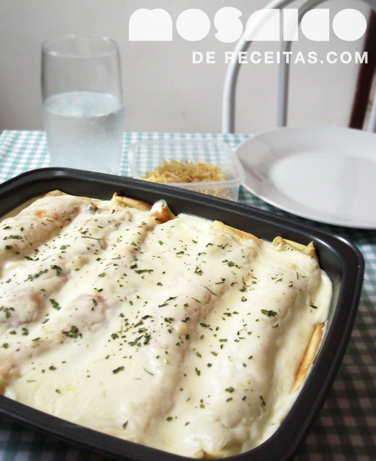 Nunca pensei em fazer panqueca com molho branco. Como isso?? HAAHAH Meu sério, eu amo panquecas mas sempre com o tradicional molho de tomate por cima. Essa aqui pra mim é inédita e uma ótima pedida. Amei :)