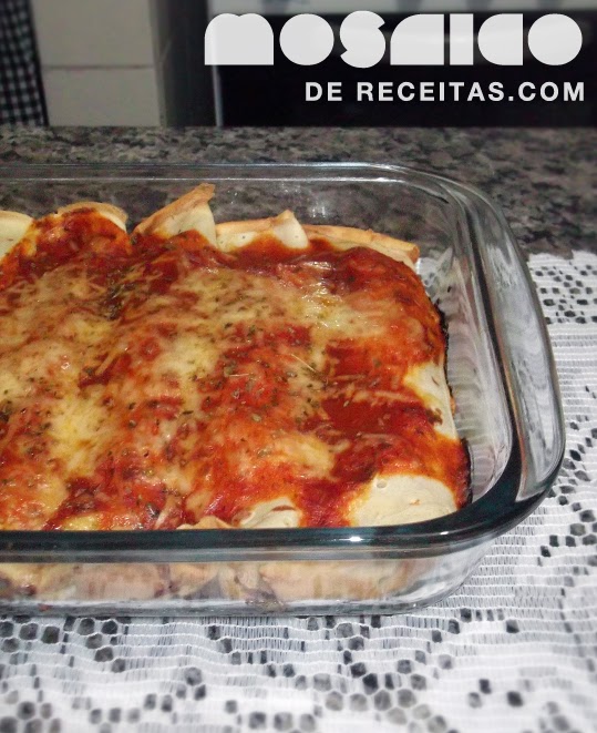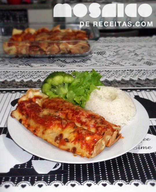 Montagem: Na fôrma onde irá colocar as panquecas, forre o fundo com uma fina camada de molho. Monte as panquecas com a carne já fria e vá colocando todas por cima do molho, alinhando-as lado a lado. Regue com o molho de tomate, salpique pamesão e orégano e leve ao forno 200º por 20 minutos ou até derreter o queijo.