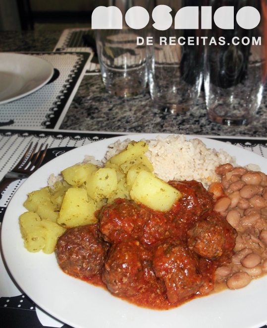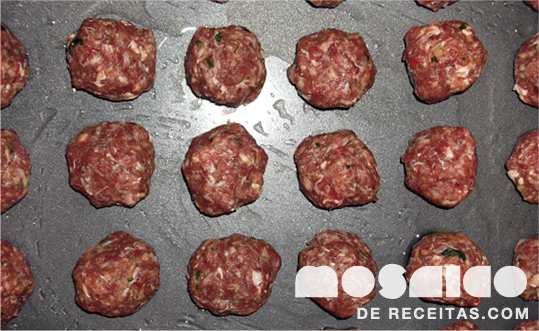 Molho: Leve ao fogo todos os ingredientes e quando começar a ferver coloque as almôndegas já assadas. Cozinhe por mais 5 ou 10 minutos.