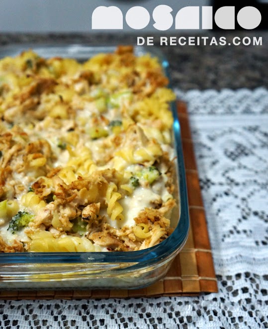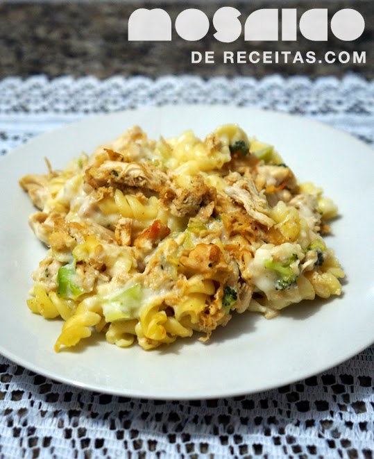 Macarrão com Molho Branco, Brócolis e Frango Desfiado