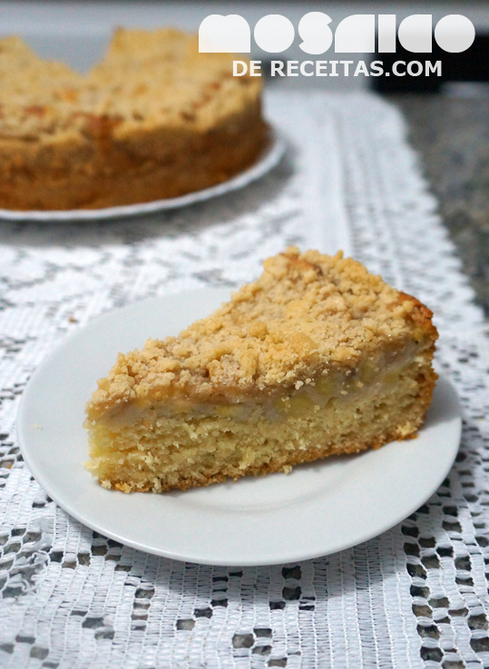 Montagem: Numa fôrma untada e enfarinhada, despeje a massa. Cubra com as bananas fatiadas e espalhe por cima a farofa. Deixe crescer por uma hora. Leve ao forno 180/200° por 40 minutos ou até ficar bem dourada.