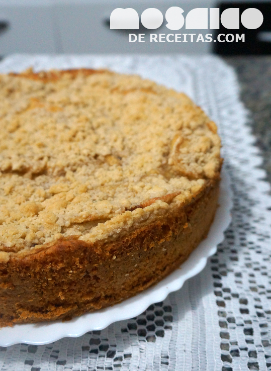 Não importa o que aconteça, sempre acabo com bananas quase passando de tão maduras na fruteira. Acho que herdei isso da minha mãe, de comprar a mais do que na realidade preciso. O engraçado é que quebro a cabeça para procurar uma receita nova para fazer com elas e na semana seguinte.. olha as bananas maduras de novo kkk. Semana passada fiz um doce (que para minha surpresa o marido adorou). Desta vez me deu vontade de um bolo. Lembrei daquelas cucas, com uma farofinha crocante por cima sabe? Achei essa receita do Rodrigo Hilbert e fiz meio desconfiado, pois ao invés de fermento para bolo, ia fermento para pão. E não é que ficou deliciosa? Super fofinha, porém bem consistente. A farofa crocantíssima e com gostinho de canela por cima. Sempre que lembrava ia lá roubar uma fatia. Receita ótima para dar um fim nessas bananas maduras que insistem em se multiplicar. ;)