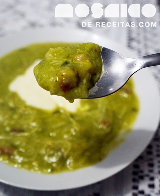 Quando chega o friozinho, chega também a temporada de sopas. E olha que o frio nem está muito forte ainda. Mesmo assim, eu gosto bastante de caldos, cremes, sopas e afins, e sempre que pinta um climinha mais ameno, bate aquela vontade de comidinhas mais quentes. Sopa de ervilha é uma das minhas favoritas. Quando era pequeno, minha mãe fazia muito, só que ela ervilha seca. Gosto também, mas cozinhar ervilha na panela de pressão é uma chatice. Faz um monte de espuma e sujeira. Particularmente prefiro utilizar as congeladas. O sabor fica mais fresco e o trabalho é bem menor. Esta receita é totalmente comfort food. Super fácil de fazer e deliciosa. Se você é daqueles que não gostam de ervilhas (traumatizado pelas ervilhas em lata) dê uma chance a esta sopa e experimente as ervilhas congeladas. O sabor é totalmente outro e você pode se surpreender bastante.