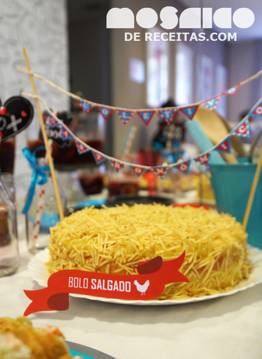 Tem receitas que meio que nos transportam para outra época não é verdade? Bolo salgado, desses feitos com pão de fôrma e patê de frango, para mim é total Comfort Food. Sempre que eu ou meu irmão fazíamos aniversário quando pequenos, tínhamos dois bolos na mesa, um doce e um salgado. Quando o Coletivo Gastronômico decidiu que o tema de agosto seria Festa Retrô, na hora já sabia a receita que faria. Para dar um ar mais contemporâneo SQN kk transformei o recheio de frango em patês coloridos e acrescentei mandioquinha ao purê da cobertura. Garanto que os acréscimos não foram só estéticos não. Cada ingrediente usado para dar cor ao recheio também deu um gostinho todo especial. A receita só parece trabalhosa devido às várias etapas, mas não se assustem, é super fácil. Uma fatia deste bolo, bem geladinha é tudo de bom!
