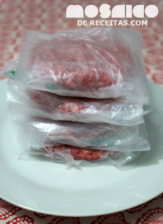 Depois que você fizer hambúguer caseiro, duvido que ainda irá gostar dos industrializados. Além de mais saudáveis, ficam idênticos aqueles de hamburguerias profissionais. Você pode usar o tipo de carne que mais gostar, porém não use um corte muito magro. Uma proporção mínima de carne/gordura deixa o hambúrguer suculento. Durante a dieta Dukan, ter alguns hambúrgueres congelados é fantástico. Você pode fazê-los simples, como os que vou apresentar aqui ou cobrir com molho de tomates, servir com legumes, ou até mesmo usar a carne para fazer outra coisa, já que ela não vai estar temperada. Sempre mantenho alguns no freezer para o cardápio da semana. Se não estiver de dieta e quiser uma versão mais incrementada, dê uma olhada nesta DAQUI, com bacon moído e molho especial de mostarde e mel.