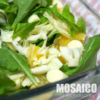 Acho que a maioria das frutas serve, mas as campeãs para mim são manga, carambola, laranja e abacate. Experimente misturar vários tipos de folhas e legumes com algumas frutas. A salada além de linda e colorida ficará muito mais nutritiva. Fora que você tem a oportunidade de usar a imaginação e aproveitar o que tiver em sua geladeira. Para minha sugestão de hoje, montei um mix de folhas de escarola, repolho, laranja e queijo. Temperei com um molhinho rápido de lemon pepper e pronto, uma saladinha linda e muito gostosa para acompanhar qualquer almoço (ou jantar).