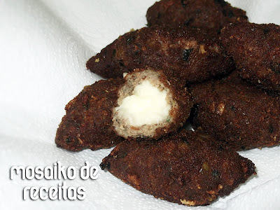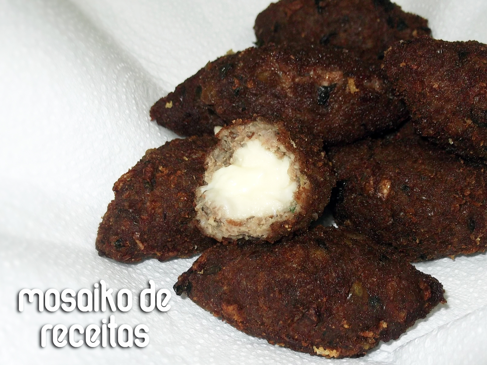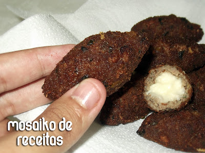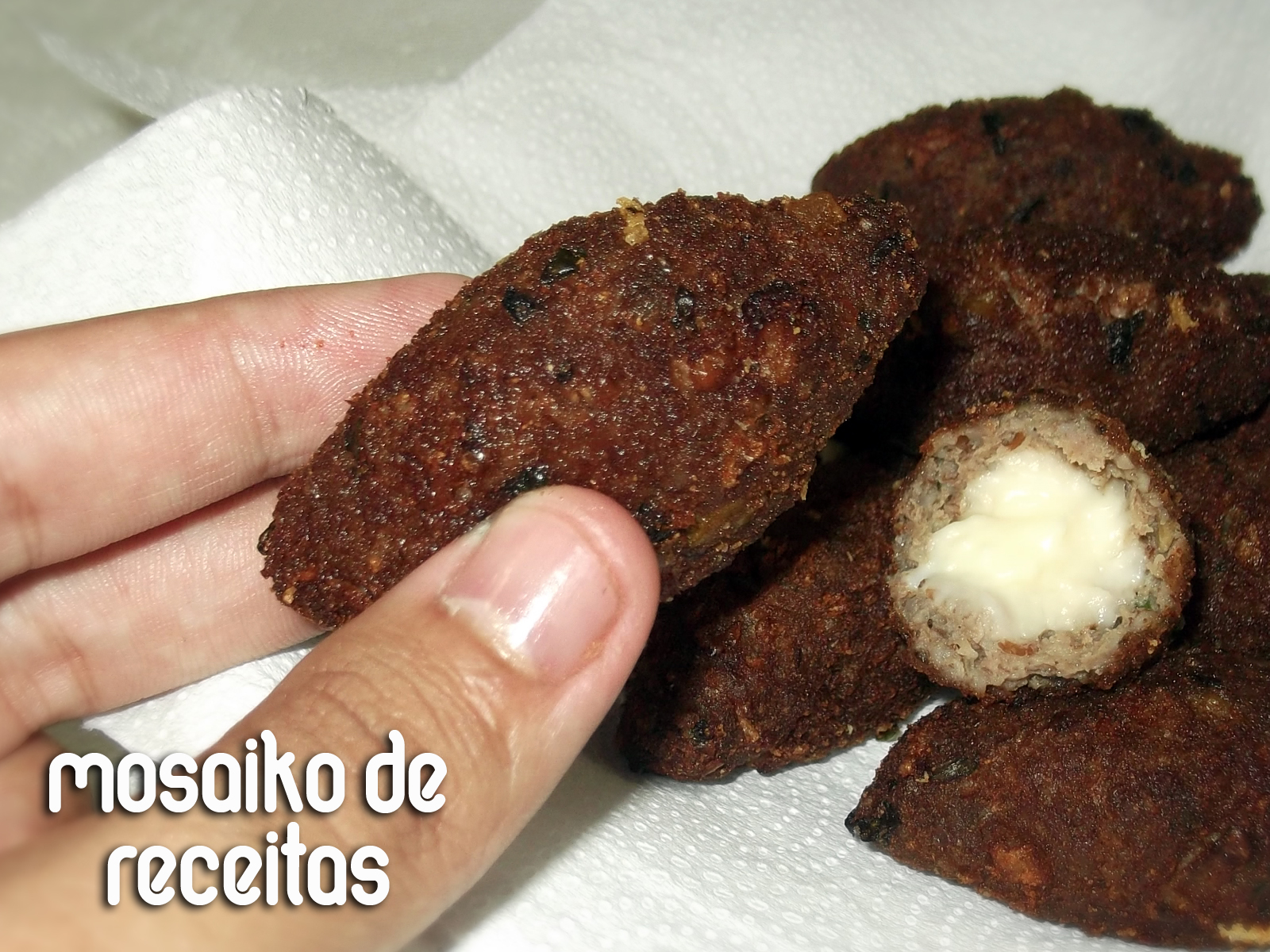 Desde que fiz o kibe de berinjela, ficou sobrando meio pacote de trigo para kibe na dispensa. Até pensei em fazer kibe de travessa de novo mas a vontade de uma friturinha foi mais forte rsrs. A receita é bem fácil e veio de uma revistinha chamada Guia da Cozinha. Por falar em revistinhas eu ja até separei umas três delas com muita coisa gostosa que pretendo trazer pra vocês. O kibe ficou uma delícia e no recheio usei o catupiry da Tirolez que tem um sabor maravilhoso e rendeu bastante. Estou preparando um post especial sobre minha máquina de pão nova e gostaria de agradecer todo mundo pelo carinho. De antemão eu já conto que ela é PERFEITA e eu amei rsrs!!